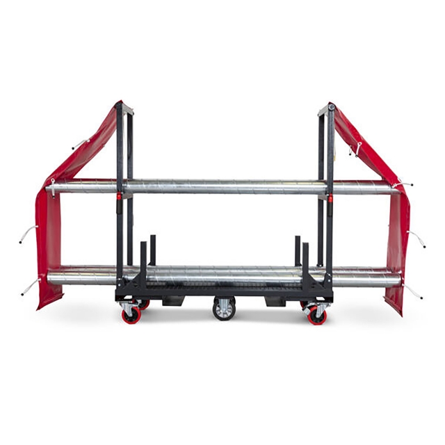 The DuctRack simplifies and promotes safe and efficient storing, moving and protecting of ducting and pipework on site. With two different sizes certified to carry a weight load capacity of 1 tonne, storing your ducting off the floor, making it readily accessible just became a lot easier. Featuring centrally fixed wheels that enable it to turn within its own footprint, and handles on each corner, whether you are operating with colleagues or on your own, the DuctRack makes lightwork of moving large loads around site. DuctRack is the first in our range to feature the SafeStop deadman braking system. This manual handling innovation has been designed with user safety first. Activated with the simple lift and release of any of the 4 handles, it delivers safe manoeuvrability at all times. Built-in covers comply with industry standards, protecting the user from sharp edges and helping to prevent dust ingress.