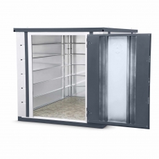 - Galvanised panels fasten neatly together to provide a robust, weatherproof store that can be configured in numerous ways.