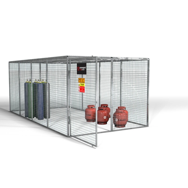 - Unique, modular, bolt-together gas cage, designed for the safe storage of gas cylinders.