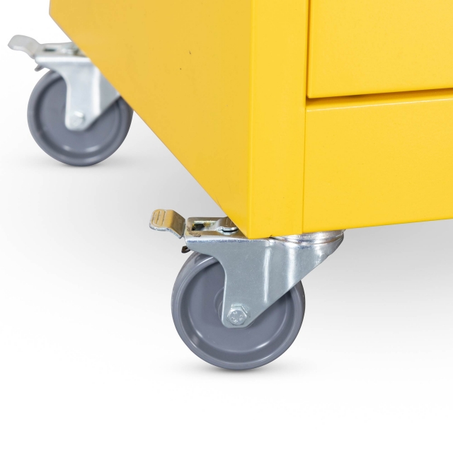Meeting all COSHH regulations, this mobile SafeStor is ideal for when you need efficient access to your flammable liquids and chemicals on-site. Tailored for secure indoor storage of hazardous substances such as paint, the HMC1 features a liquid-tight sump to prevent spills and galvanised shelves for enhanced durability and longevity on-site. With the addition of 80mm castors, this unit is perfect for labs and workshops when you need COSHH substances easily accessible but still keeping yourself and your surroundings safe.