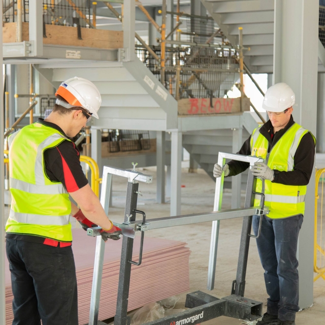 The ingenious Armorgard LoadAll trolley range is a game-changer when it comes to moving plasterboard, wood, metal and other large-sheet materials around site. Robust, swivelling wheels make light work of manoeuvring a fully loaded trolley even through doorways and round corners! LoadAll is available in a variety of sizes. Features a clamping system to secure loads when in transit, and a telescopic handle for enhanced safety.