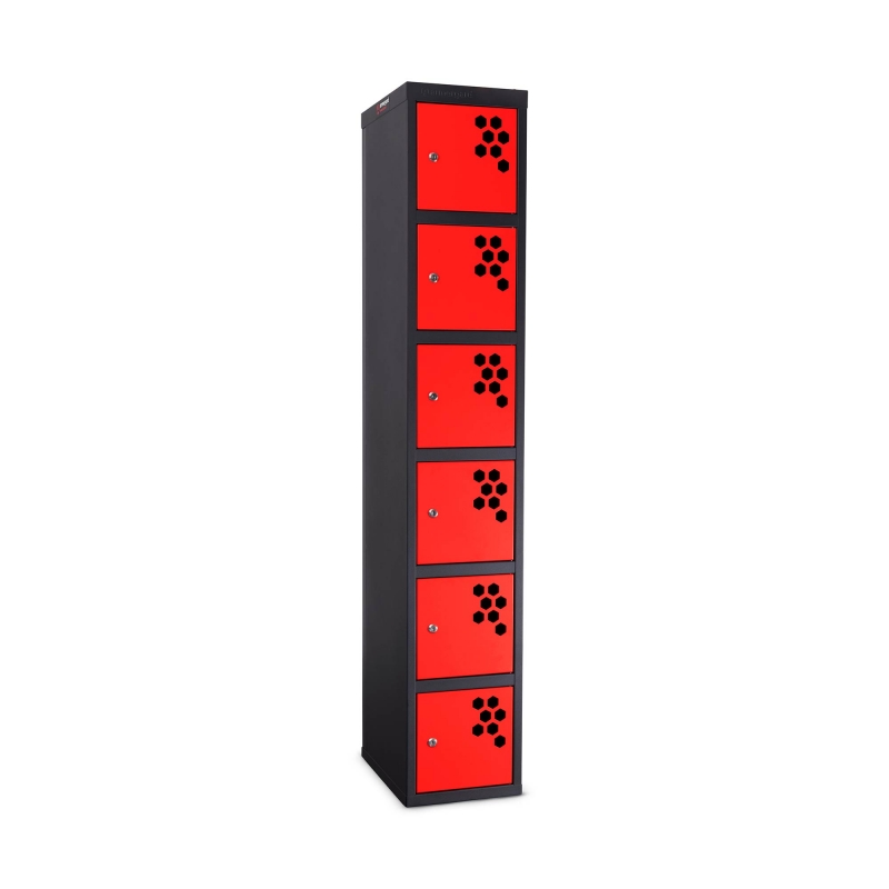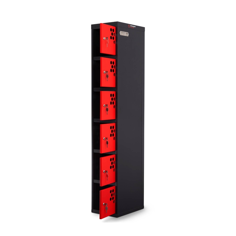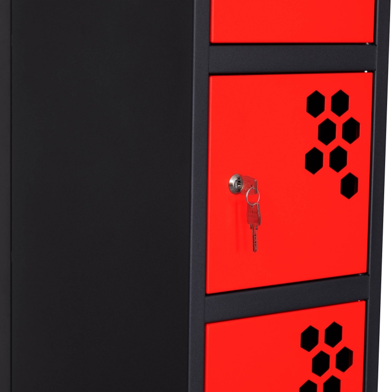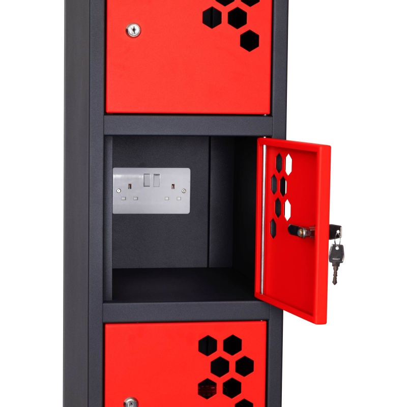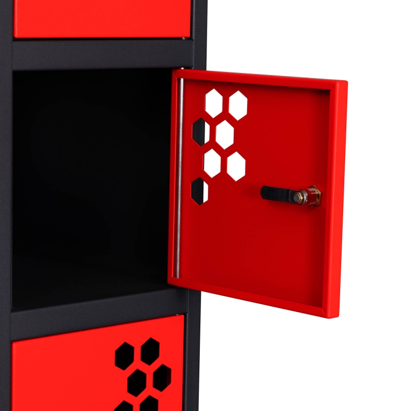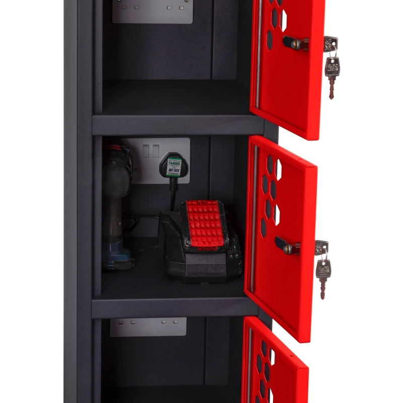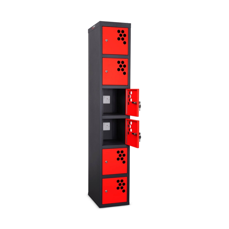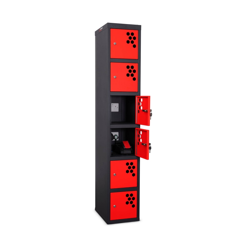 - Ventilation: The locker doors are perforated to ensure ventilation and visibility, which helps to minimize heat buildup during charging.