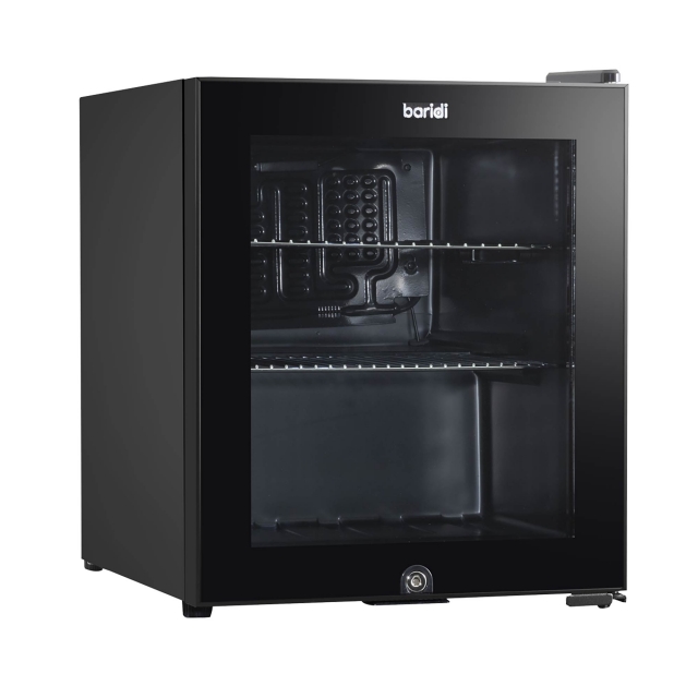 The Baridi DH12 Mini Fridge is a compact yet spacious solution for your chilled storage needs. Ideal for bedrooms, offices, or entertainment areas, it offers a generous 50L capacity and direct compressor cooling technology for a reliable temperature range of 3-10°C. Customize the internal temperature with the built-in thermostat, and enjoy convenient organization with two removable wire shelves. Keep contents secure with the integrated lock and benefit from the internal LED light for easy visibility. This energy-efficient model (Class E) also requires ample ventilation space for optimal performance.