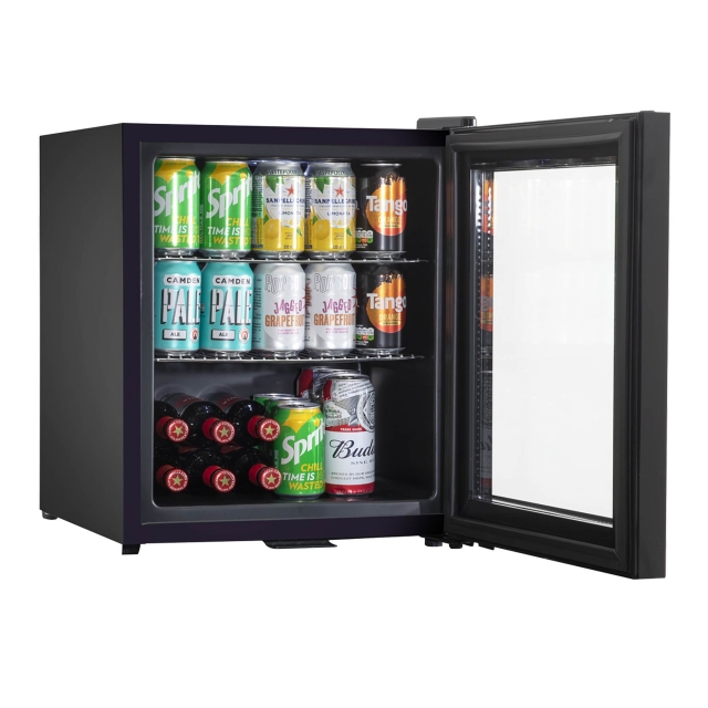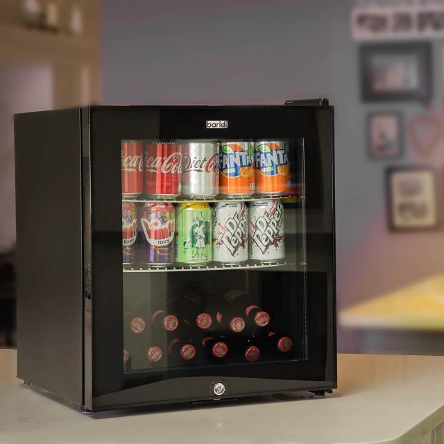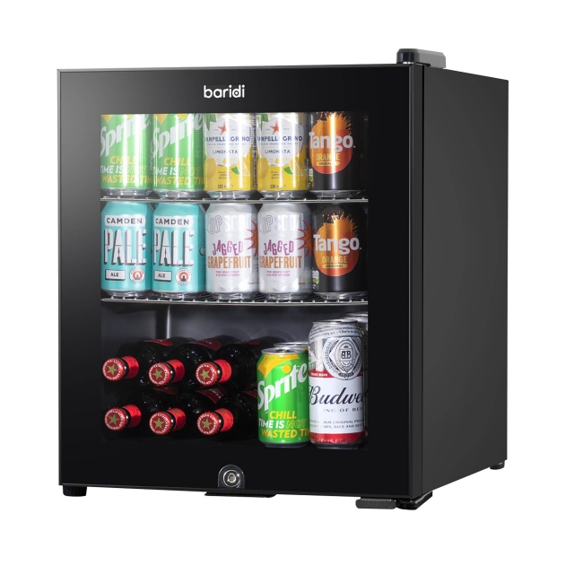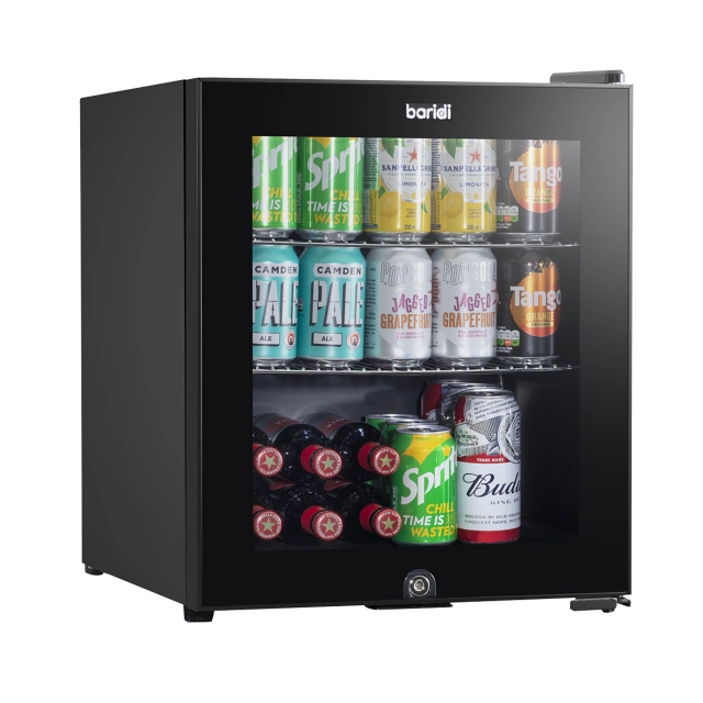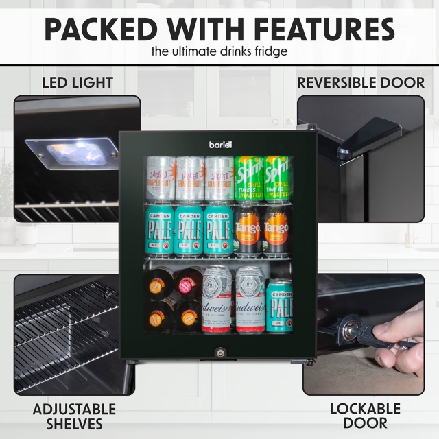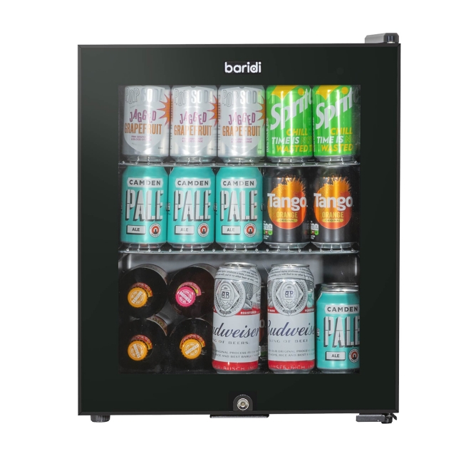 Baridi 50L Tabletop Beer & Drinks Mini Fridge with Light 3-10°C - Black & Glass