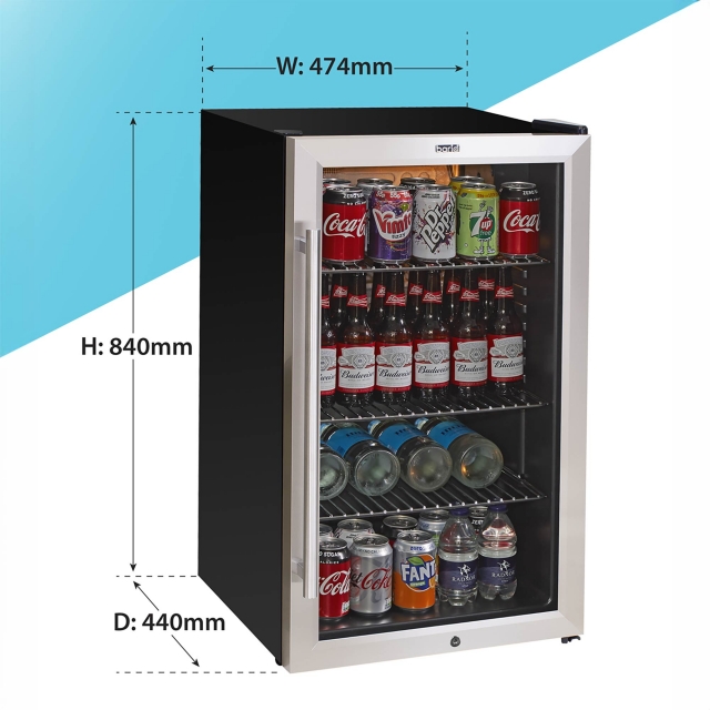 - LARGE CAPACITY - 85 Litre size means plenty of room for beer, wine and soft drinks with space for up to 110, 330ml cans. Nett (Useable) Capacity = 80L.