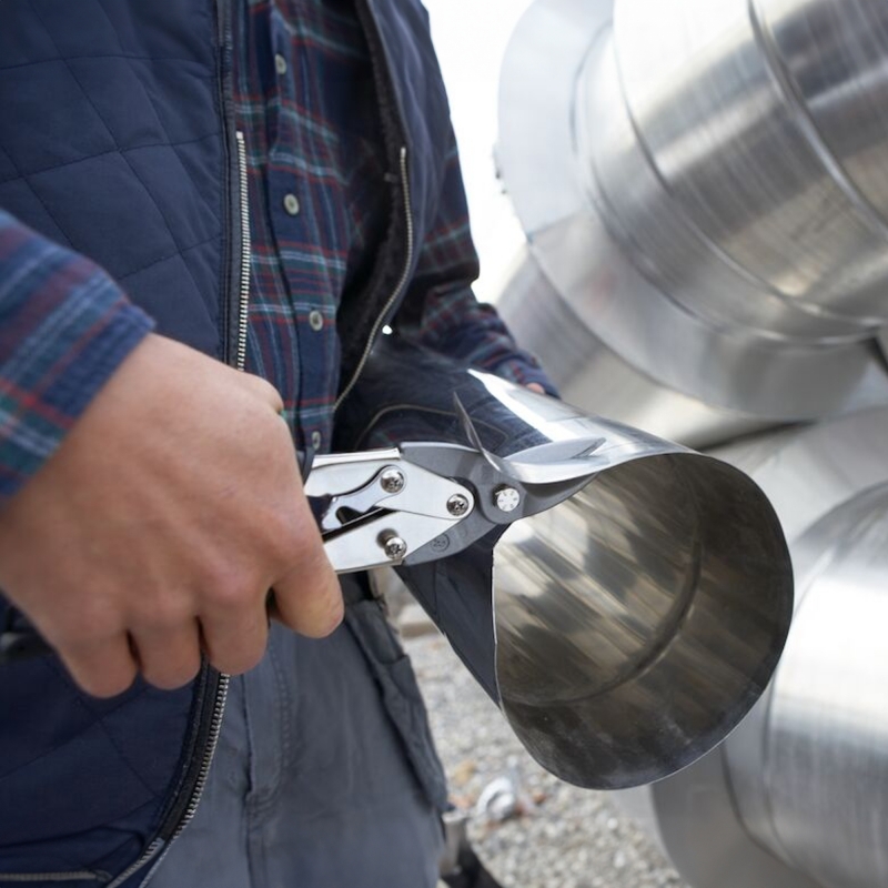 - Serrated blades: The serrated blades grip the metal and prevent slipping.