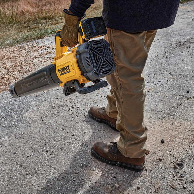 We recommend: DeWalt DCM562P1This efficient 18V brushless blower can clear debris with an air volume of up to 11.3m3/min (400 CFM) and an air speed up to 90mph. It is packed with user-friendly controls like variable speed control, a lock-on switch, and a paddle-style trigger with an overmould hand grip to minimise user fatigue.