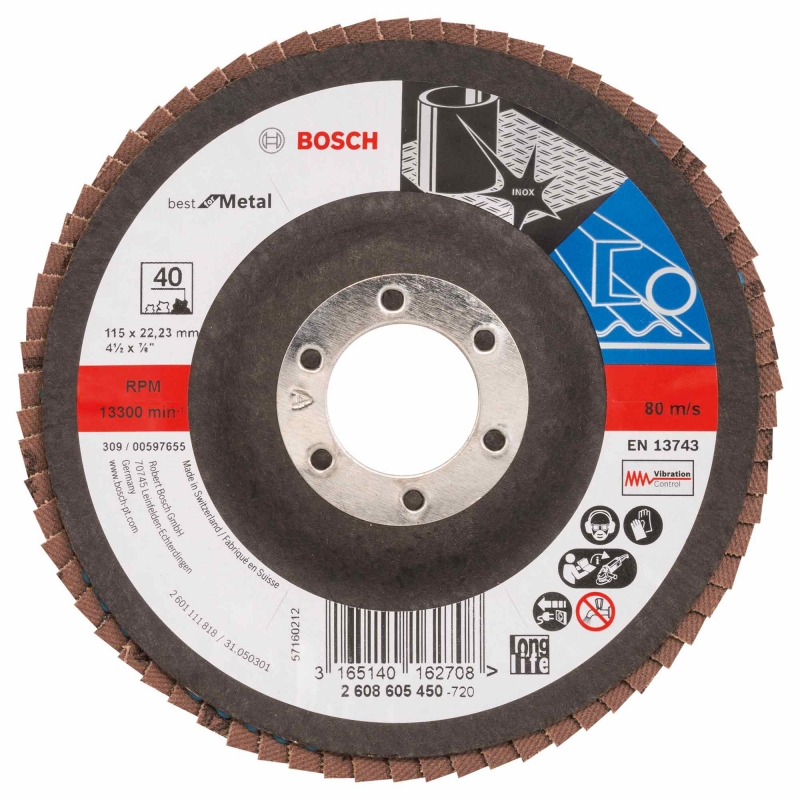 BOSCH 2608605450 115mm x 22mm Flap Disc 40G