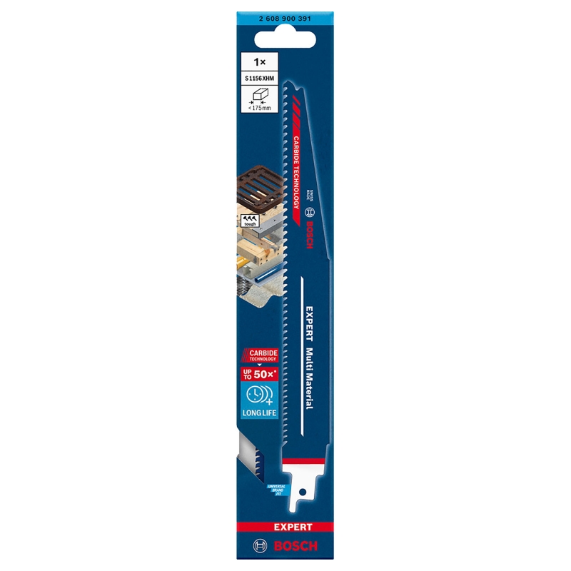 The Bosch Expert Multi-Material Sabre Reciprocating Saw Blade is the ultimate aid for cutting all materials on a construction site. With the ability to cut metal, wood, plastics, construction composites and pre-fabricated materials, the saw blade is extremely handy as it features Bosch Carbide Technology. Not only this, but it also has a progressive tooth pitch that is designed to cut both thick and thin materials, making for a highly versatile product that is ideal for professionals, not least because it can last up to 50x longer than a Bi-Metal blade.