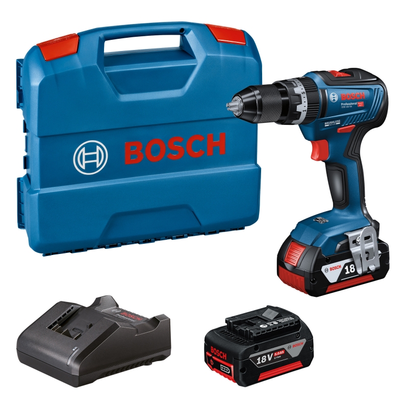 BOSCH GSB18V-55 18v Brushless Combi Drill with 2x5ah Batteries