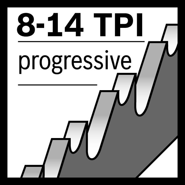- Tooth spacing [mm] / TPI: 1.8-3.2 / 8-14