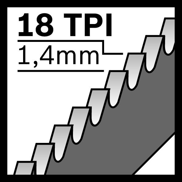 - Tooth spacing [mm] / TPI: 1.4 / 18