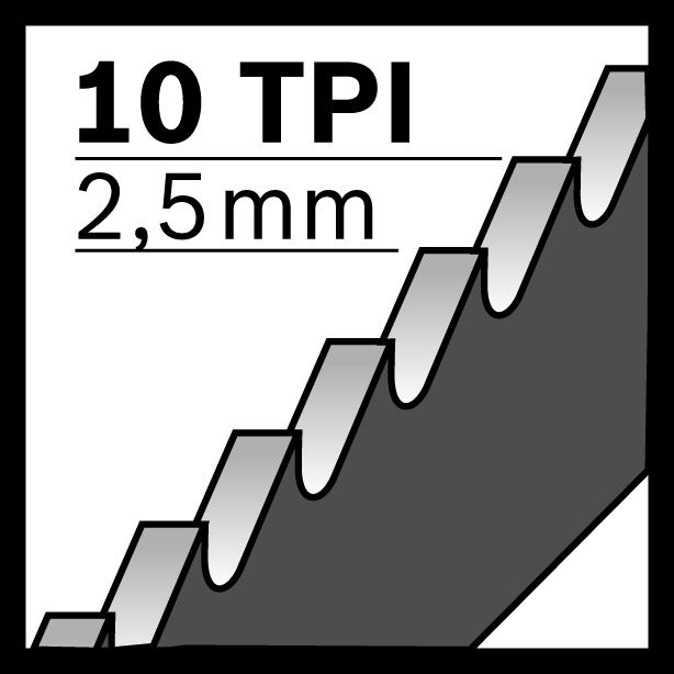 Another consideration is the number of Teeth Per Inch (TPI). The higher the TPI, the smoother – and slower – your cut will be. The TPI of individual blades can range from 2 (for rough cuts in wood) up to 24.