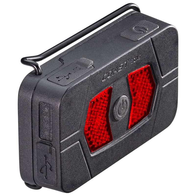- The booster also features a rear-facing, independently controlled red safety signal that shines in two modessolid and flashingto ensure you are visible from behind.