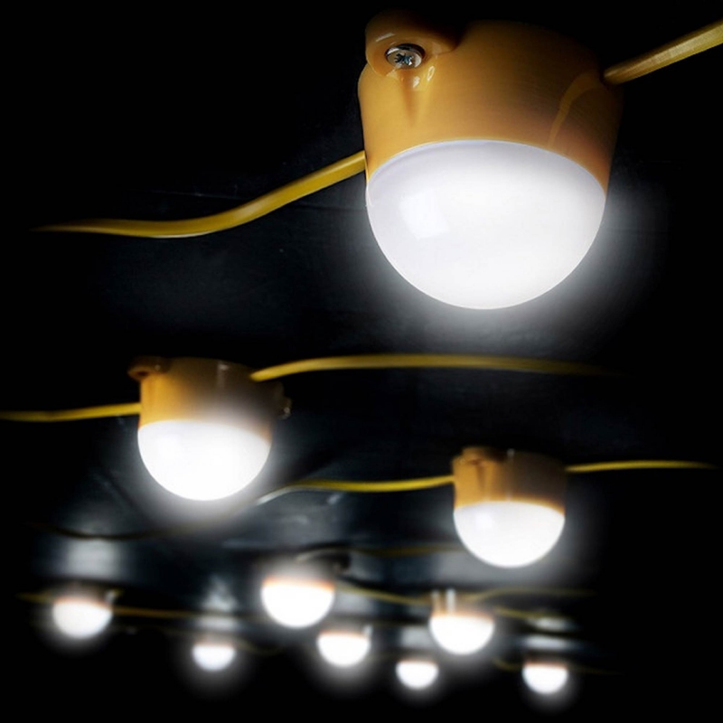The LED capsule festoon is designed to give a unique combination of great light output, low running costs, and robust construction with rubber cable from end-to-end, it sets this product apart from the more traditional festoons, whilst built-in mounting points remove the need for ceiling hooks or poles