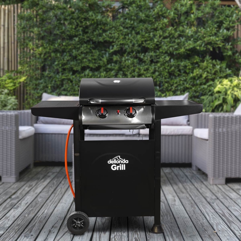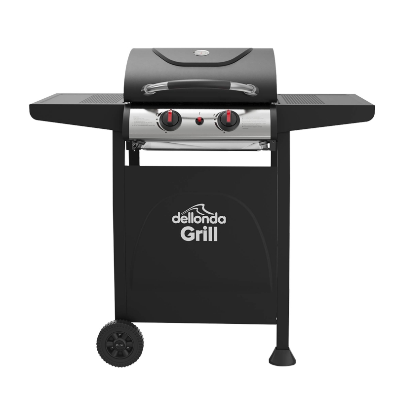Dellonda 2 Burner Gas BBQ Grill with Ignition & Thermometer - Black/Stainless Steel