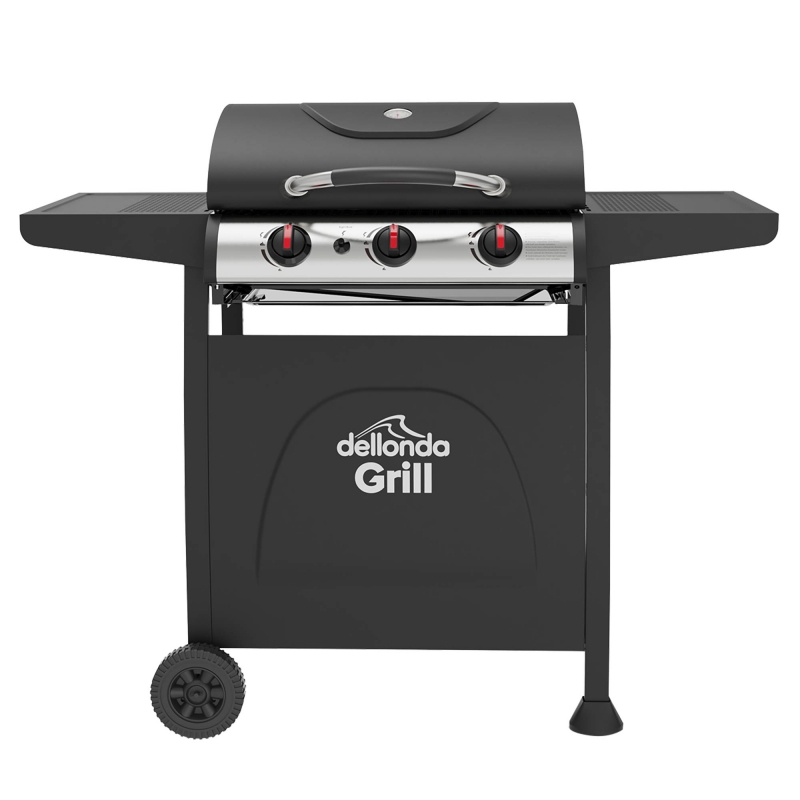Dellonda 3 Burner Gas BBQ Grill, Ignition, Thermometer, Black/Stainless Steel