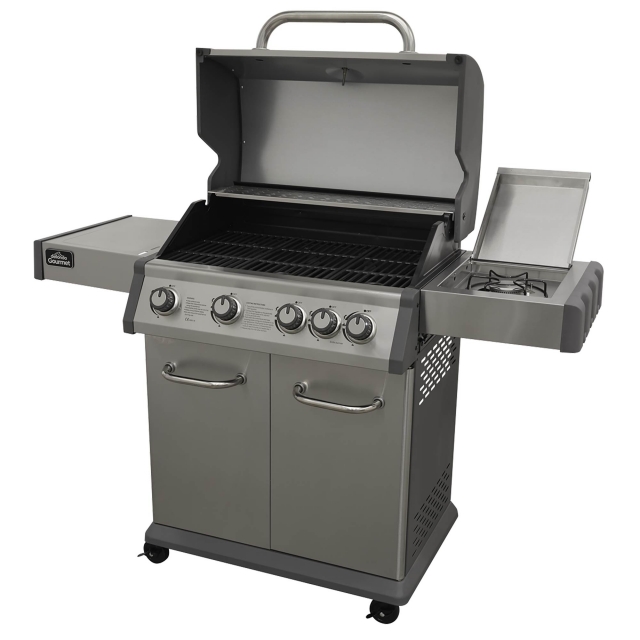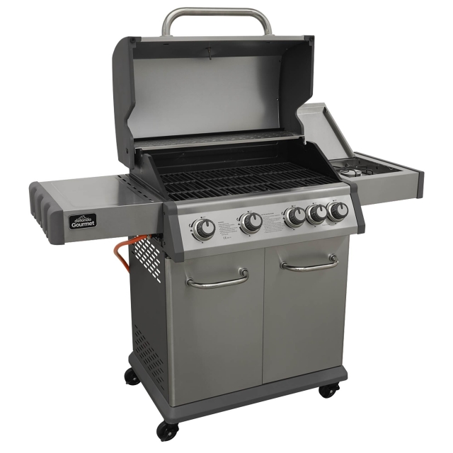 Gas BBQ with four stainless steel burners. Built-in thermometer enables you to easily keep track of your cooking temperature. Piezo ignition ensures a safe and easy start-up every time. High quality cast iron cooking grates with a matt enamel coating. Features side burner, perfect for cooking and preparing sides/sauces. Features side shelf giving extra room for preparation. Warming rack frees up space on the grill whilst keeping your food warm after cooking. Supplied with regulator and hose assembly for use with propane patio gas bottles. Features four universal castor wheels for easy manoeuvrability. Product Size (W x D x H): 1330 x 570 x 1140mm. Some simple assembly is required.