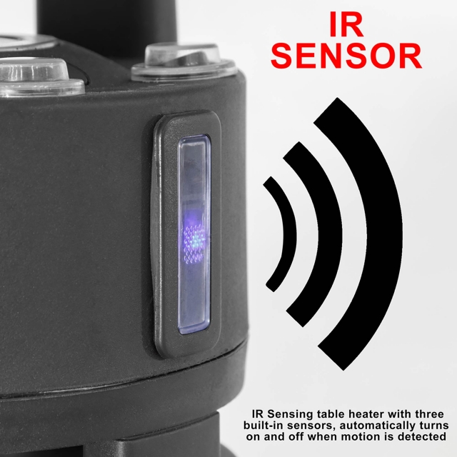 - IR MOTION SENSORS - 3 Built-in sensors, automatically turns on and off when motion is detected. Motion sensors can be turned off and heater used for a constant heat output. Built-in tip over safety switch.