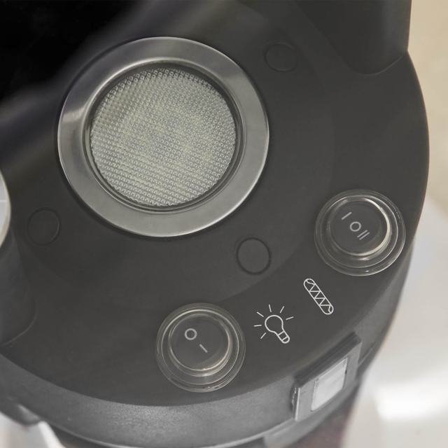 IR Sensing table heater with three built-in sensors, automatically turns on and off when motion is detected. Motion sensors can be turned off and heater used for a constant heat output. High efficiency carbon fibre heating element. Stylish and modern design with stainless steel/black body and tempered glass table top. IP44 Rating offers splash resistance from all directions. Features LED light beneath glass table top. Built-in tip-over safety switch.