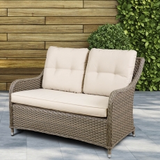 Dellonda Chester Rattan Wicker Outdoor Lounge 2-Seater Sofa with Cushion, Brown