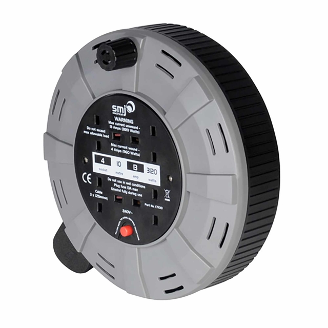 The Deta Electrical CT1013 is a 4 socket, 10 metre cable reel with thermal cut out and a maximum load of 3120 watts. Its compactly designed to fit comfortably in the hand and there is a small handle for easy wind up and use.