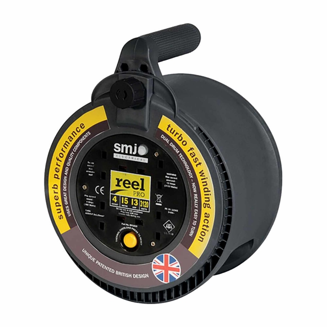 The Reel Pro Range of Extension Leads from Deta Electrical is made from tough resilient plastic with patented technology to ensure friction free winding for complete comfort and easy use. It also encloses a high visibility yellow cable and has an external handle to ensure it is easily transported. Rated at 13A with 4 child safety sockets they are ideal for outdoor use.