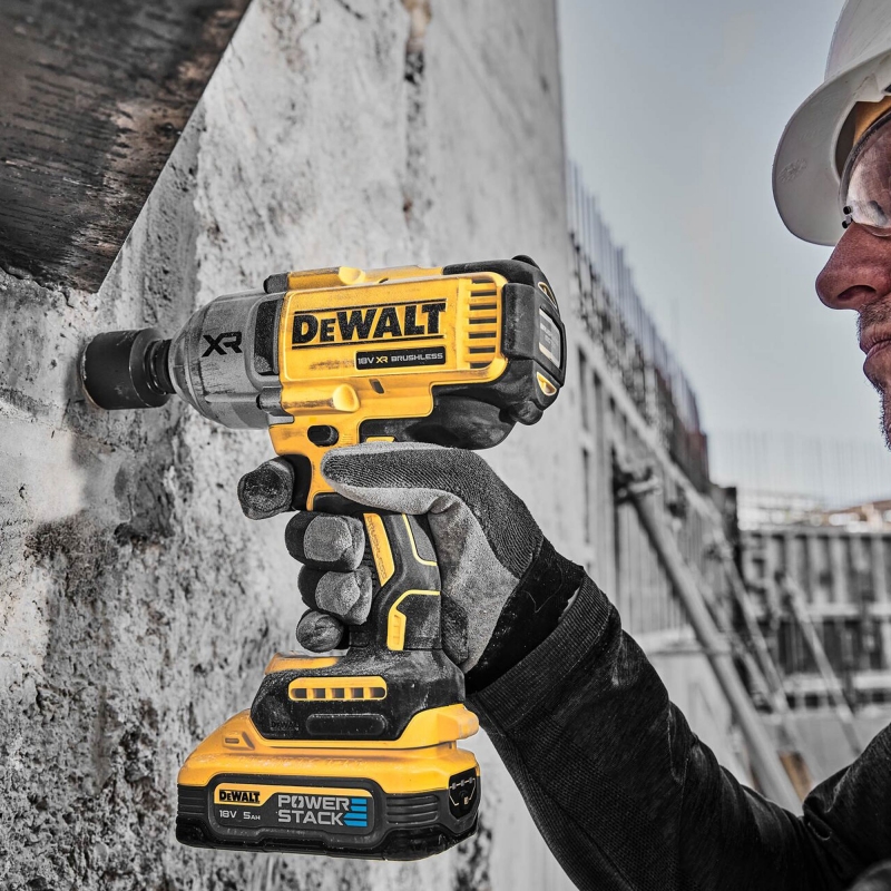 The DCF900H2T is designed for and supplied with DeWalt POWERSTACK batteries which deliver next level productivity on those three important fronts; power, efficiency and lifespan.