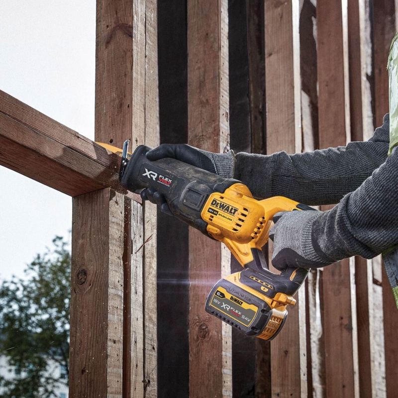 The DeWalt DCS386 reciprocating saw is ideal for medium and heavy duty applications, the pivoting shoe on this recip saw has an open toe to provide better contact with your material, and offers better viability and higher stability during cutting. It also features tool free blade change, allowing for a quicker transition between old and new blades.