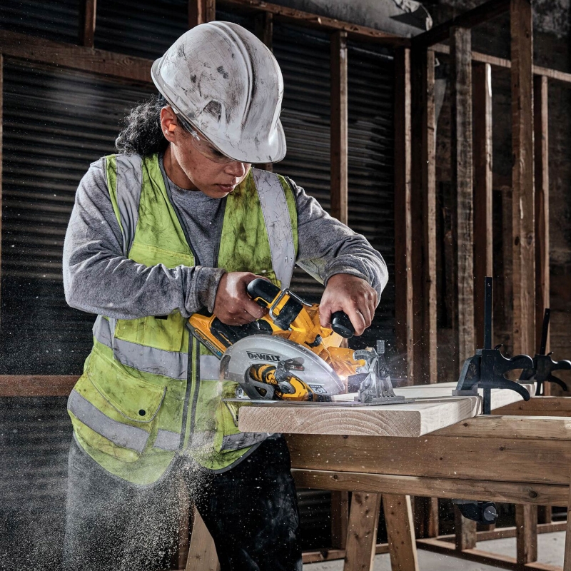 Our range of Cordless Circular Saws starts with 12v machines, but the increased power and relative affordability of 18v tools means this has become the industry standard, particularly as the 18v machines offer much more power without a huge increase in tool size. Professionals who need more power from their Circular Saw for working on site could also consider the 40v XGT range from Makita or DeWalt’s 54v FLEXVOLT machines.