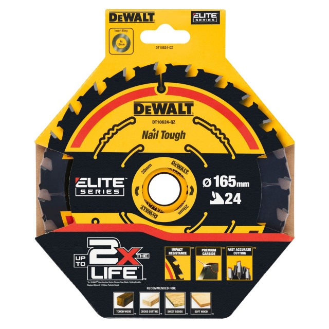 DEWALT DT10624QZ 165x20mm 24T Saw Blade (Cordless)