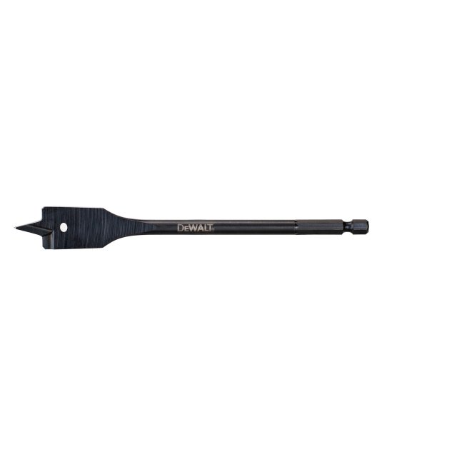This robust and durable DeWalt EXTREME spade bit is ideal for the rapid drilling of holes in hardwood, softwood, lumber and wood with nails. The 1/4" shank ensures easy and slip-proof clamping and bevelled outer cut edges enable precise positioning of the drill and a clean hole pattern, even in wood with nails.