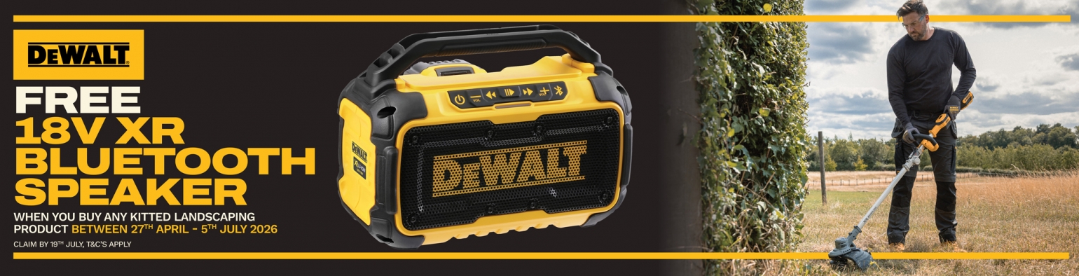 Claim your Bluetooth Speaker at: https://www.dewalt.eu/landscaping-redemption/