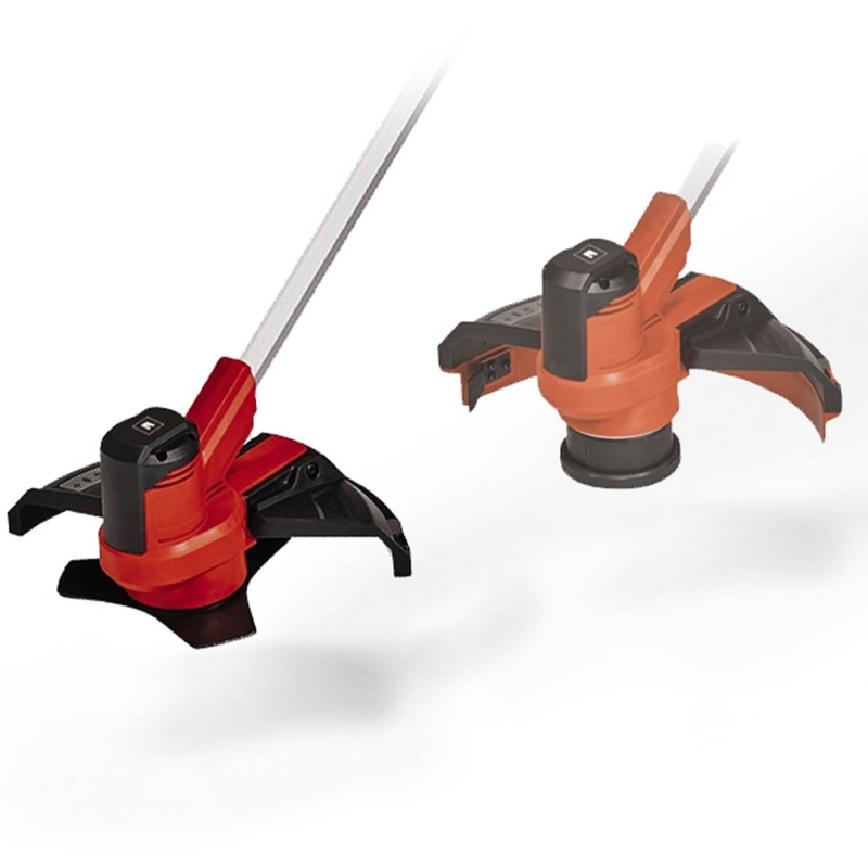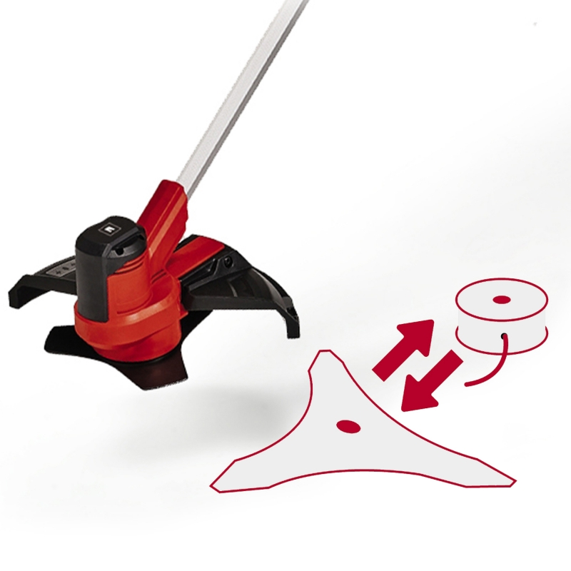 The Einhell AGILLO 18/200 cordless scythe offers all the advantages of the clever Power X-Change series with the high-quality lithium-ion battery system. The cordless scythe is powered by a front motor, which ensures optimum power transmission and weight distribution. The robust line spool with bump feed system is suitable for dense growth and tall grass, and there is a high-quality 3-tooth blade for tackling undergrowth and scrub. The spindle lock system makes it easy to change the cutter set. The AGILLO delivers a maximum speed of 7,500 revolutions per minute and electronic speed control keeps the power in check, for adjustment to each specific application. The two-hand bike handle is universally adjustable. For optimum handling there is a high-quality high-comfort harness, for ergonomic operation there is a soft grip and for tireless operation a lightweight aluminium tubular long handle. The split shaft makes it easy to transport and stow away in minimum space. There is also an integrated wall holder for easy and secure storage. One 18 V Power X-Change rechargeable battery is required for operation. This is available separately, for example as a practical starter set.
