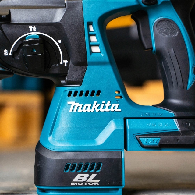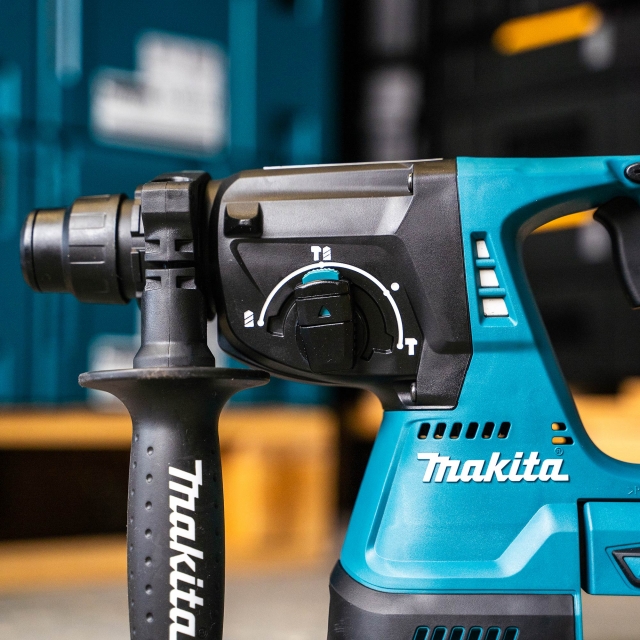 The Makita DHR242 is a high performance cordless combination hammer which accepts SDS+ drill bits. With 40 different angles and a longer bit guide, the DHR242 is a formidable machine which will withstand use on the most demanding of materials.