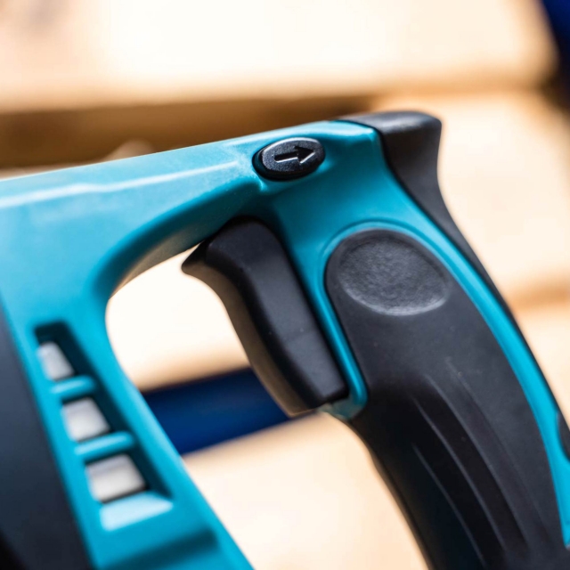 - Easy-to-grip handle ergonomically designed to: give maximum power thrust, provide a sure and comfortable grip in any operation; overhead application, drilling with palm-up or palm-down grip.