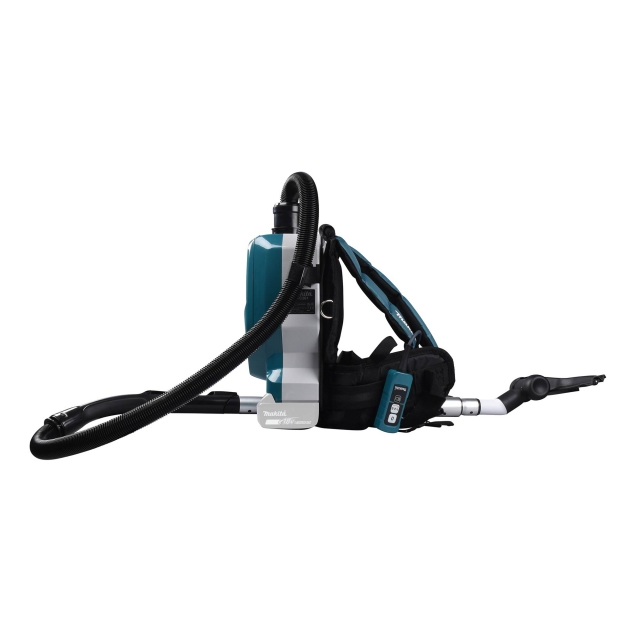 The Makita DVC261 is a cordless backpack vacuum cleaner powered by two 18V Li-ion batteries in series which offers up to 140 minutes of runtime.