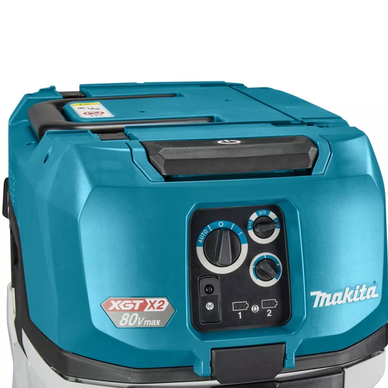 The VC006GM from Makita is an 80v Max cordless M-Class vacuum cleaner powered by two 40Vmax XGT Li-Ion batteries in series. With a GYUPPA automatic self-cleaning twin filter, the unique design of this tool removes dust from pre-filters during operation.