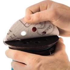 To change sandpaper on a Makita sander, first unplug or switch off the tool. For hook-and-loop (Velcro) models, simply peel off the old disc and press the new one into place, aligning the holes. For clamp-style palm sanders, lift the clamps, insert the new sheet, then secure it flat before use.